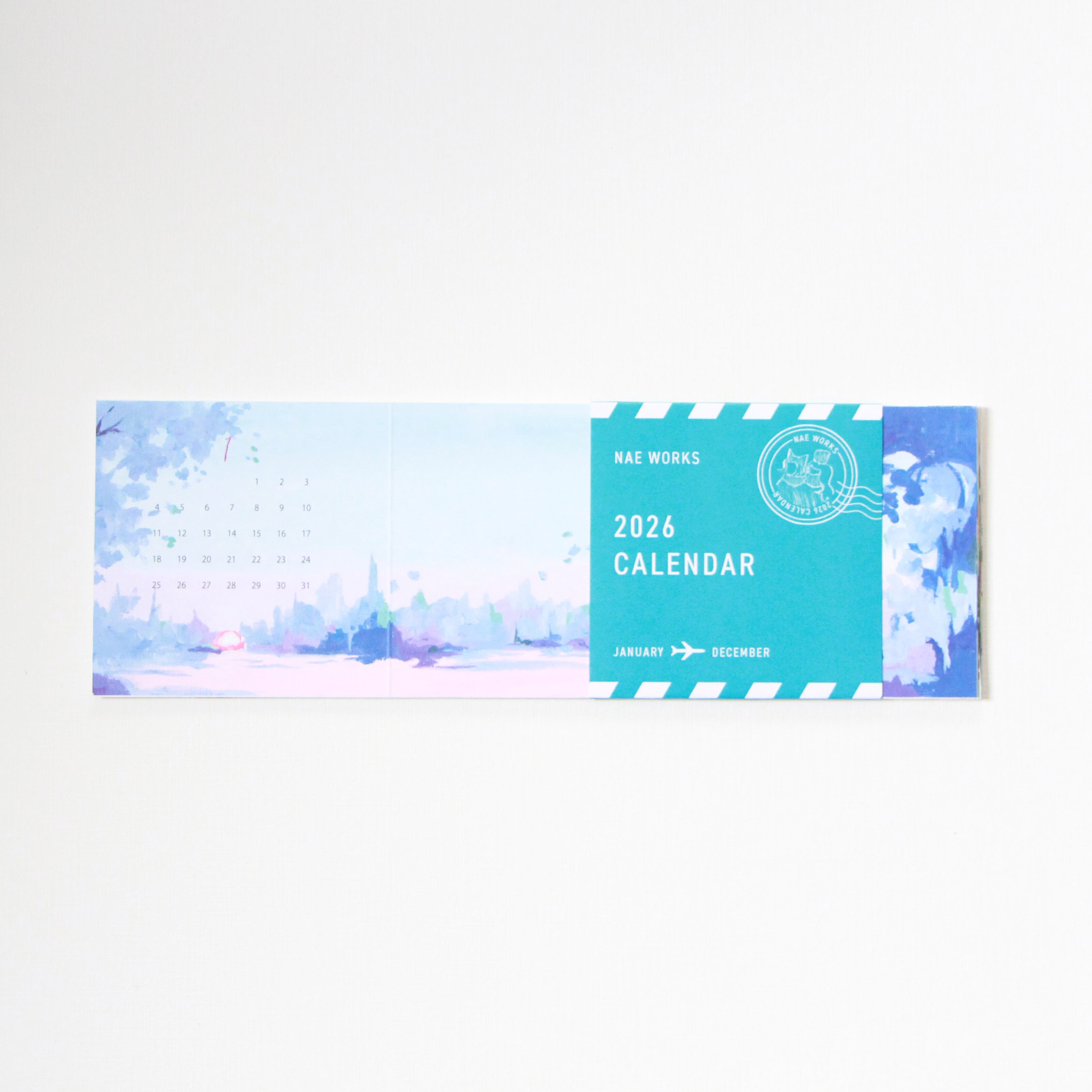 エアメール風デザインのビビットな水色の帯も旅情を演出。旅するように毎月の景色をお楽しみください。